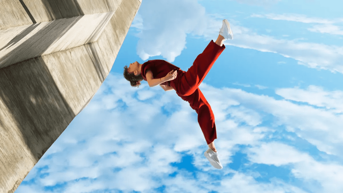 Allbirds’ new ad campaign, created with Sid Lee, has a dreamy quality as people walk around in Tree Gliders before floating into the air. Courtesy of Allbirds