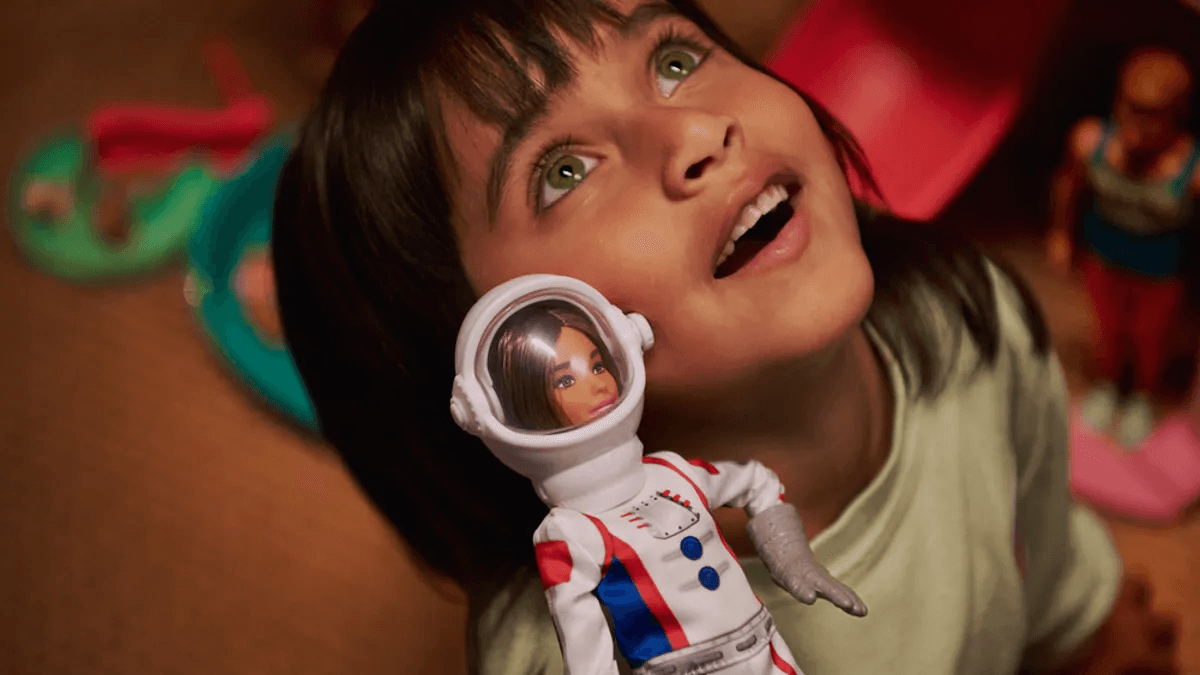 A new ad begins with the sound of children’s laughter and voiceover of various adults as they describe what they wish they could give to their kids. Children are then seen in playful scenarios with Barbie dolls as the voiceover continues, describing a number of qualities, from a wild imagination to the confidence to be “unapologetically you,” that the speakers wish they could pass on to their kids. The spot ends with the words, “but most of all, I’d give you the belief in your own potential, and, well, that’s kind of Barbie’s whole thing.”