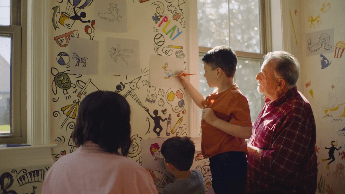 “We talked about the story, like the Ghost of Christmas Past, where we take parents back and make them viscerally feel what it felt like to be back in childhood doing artwork like that, and remember what it felt like to have people in your life nurturing that creativity,” said Brian Eden, executive creative director at Dentsu Creative.